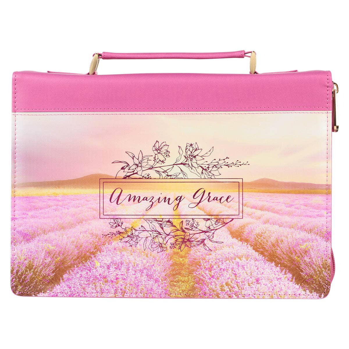 Bible Cover Fashion Pink/Flower Field Printed Amazing Grace