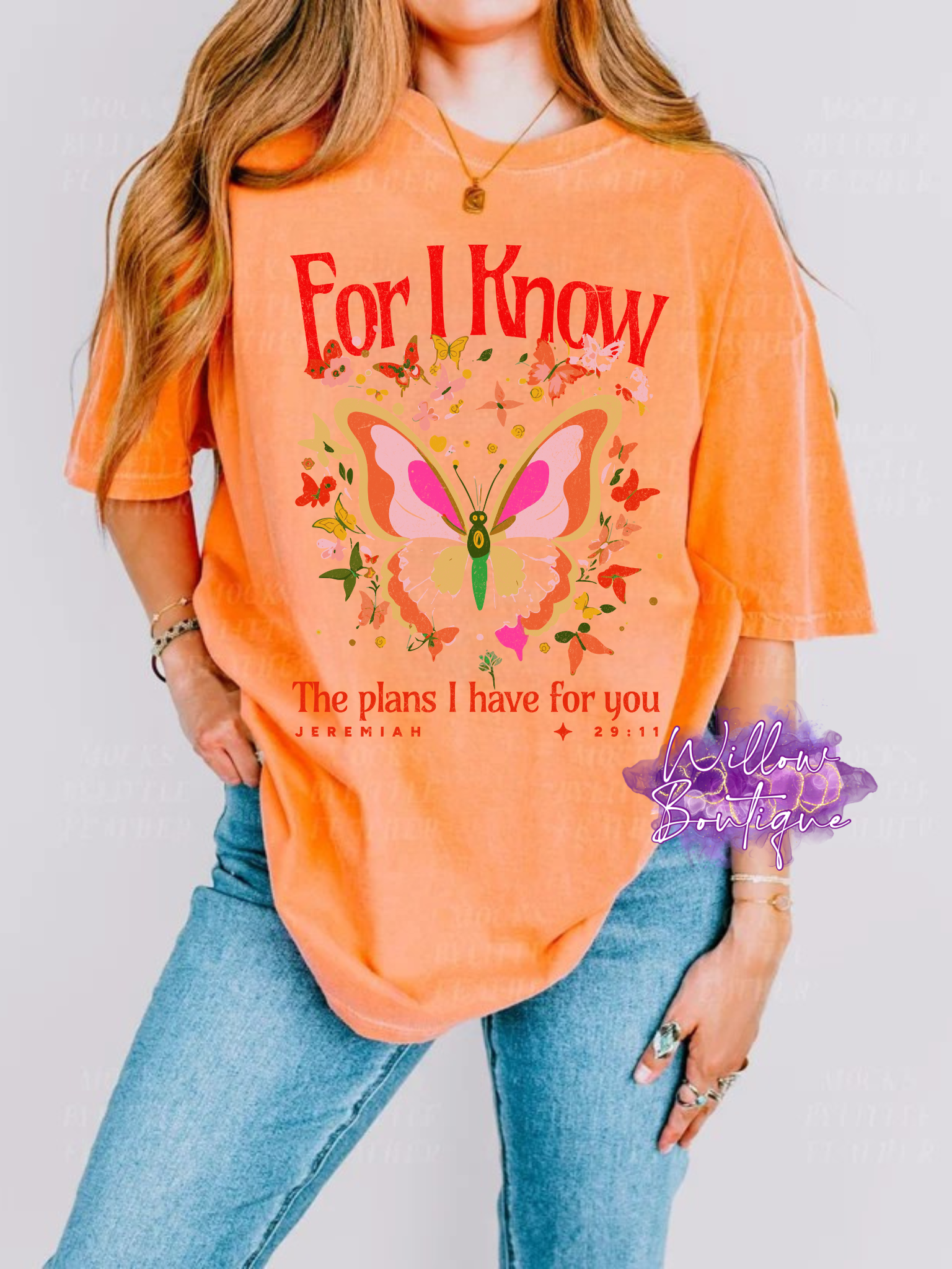 Experience the beauty and freedom of this inspiring I Know Butterfly Tee. With its abstract butterfly design and powerful message of faith, this tee will be a reminder to trust in your journey. Let this religious tee be a symbol of hope and confidence in your future.