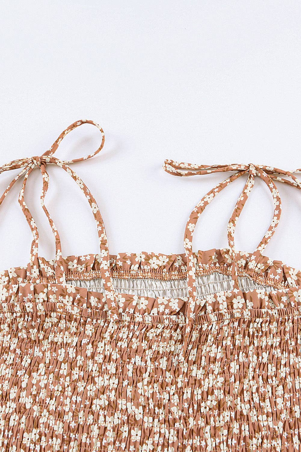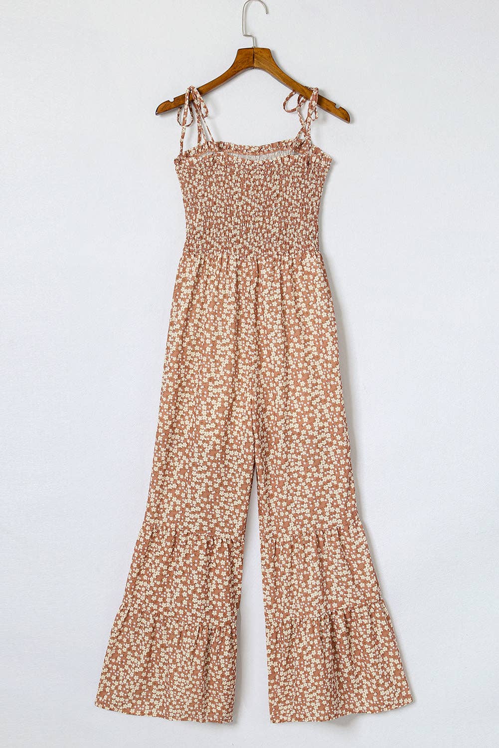 Thin Straps Smocked Bodice Wide Leg Floral Jumpsuit
